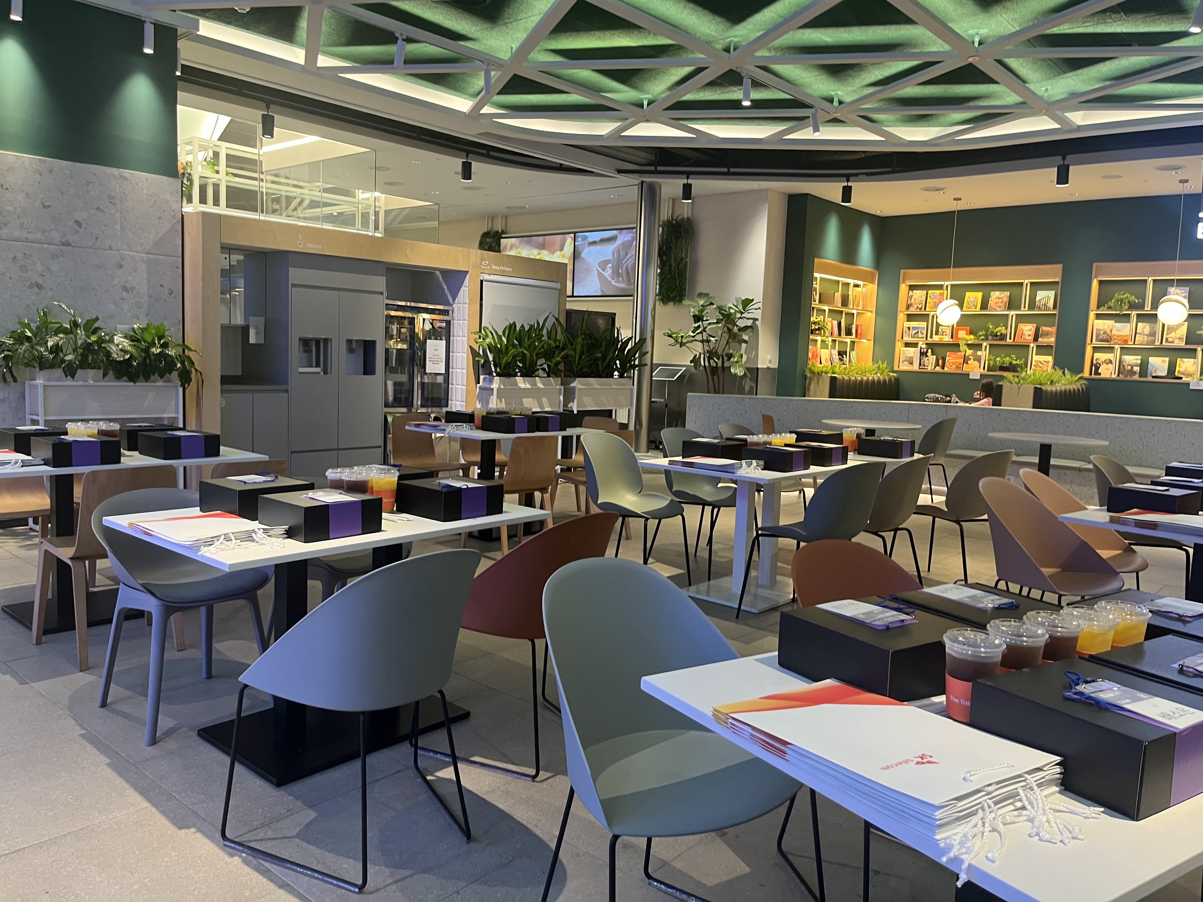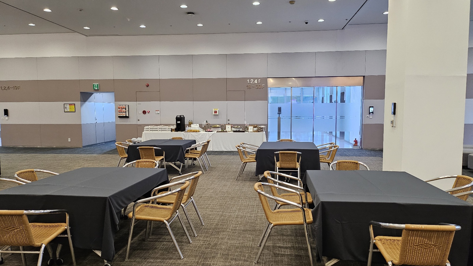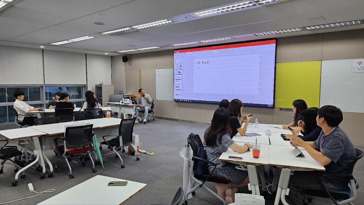 정적인 분위기인 강의실에서 진행될 줄 알았으나 생각보다 탁 트인 개방적이고 자유로운 분위기라 경직되었던 몸이 살짝은 풀렸던 것 같다. 화면에 띄워져 있는 공지를 보고 여러 테이블 중에 내 명찰이 놓인 자리를 찾아 착석하였다.