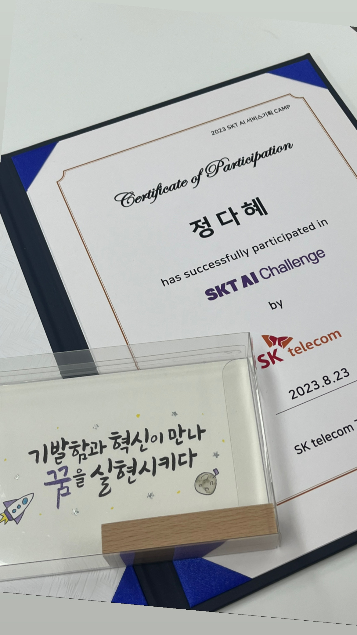 개발자가 아닌 기획자를 위해 이런 행사를 열어주신 SKT에 이 자리를 빌려 너무 감사하다는 말씀드리고 싶습니다. 올해 처음 진행된 행사임에도 이렇게나 알차고 의미 있게 기획해 주셔서 감사했고 행사 내내 신경을 많이 써주시는 게 느껴져서 감동의 연속이었어요. 이번 경험을 바탕으로 멋진 AI서비스 기획자로 성장하여 SKT에서 뵐 수 있는 날이 오기를 간절히 바랍니다..! 🙏🏻 또한 하루종일 함께 한 우리 3조 팀원들에게도 너무 고맙다는 말 전하고 싶고 이 행사를 통해 좋은 인연들을 만나게 된 것 같아 매우 기쁩니다! 기회가 된다면 꼭 만나요! 기획자 인맥 정말 귀합니다..